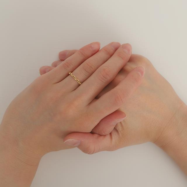 一般的なリングと異なり、しなやかに指にフィットする着用感の良さもチェーンリングならでは!