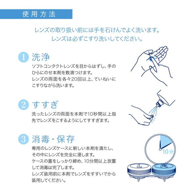 ・3.消毒・保存:レンズケースに本剤を満たし、10分間以上保存してください。