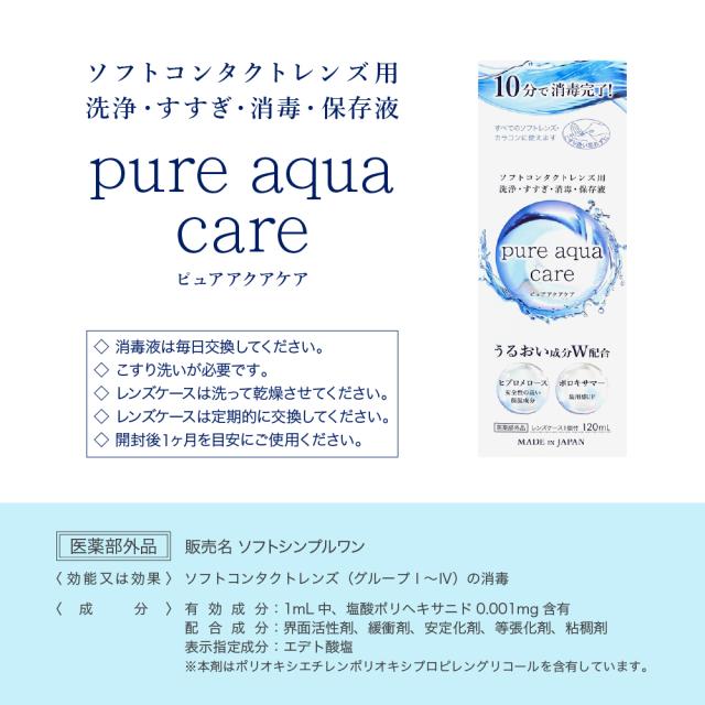 [2箱セット] ピュアアクアケア 120ml トラベルサイズ ケース付 洗浄 すすぎ 消毒 保存液 洗浄保存液 pure aqua care ソフトコンタクトレンズ用