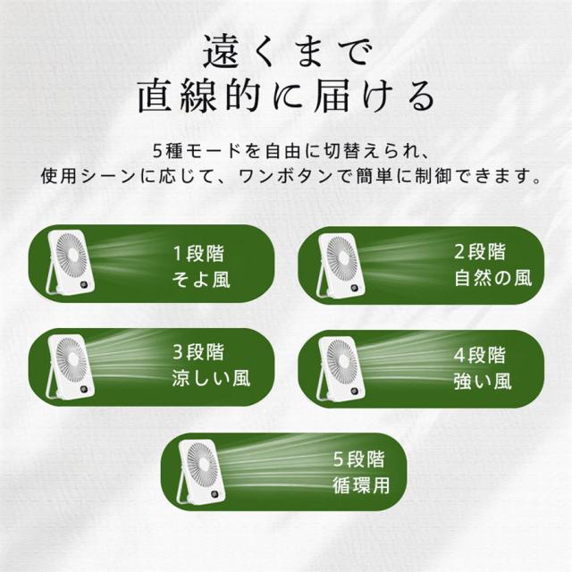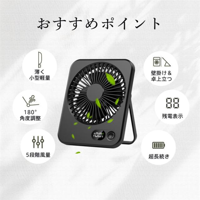卓上扇風機 充電式 小型扇風機 ハンディファン 壁掛け 薄型 静音 コンパクト 省スペース 簡単操作 風量5段階 残電量表示 ポー