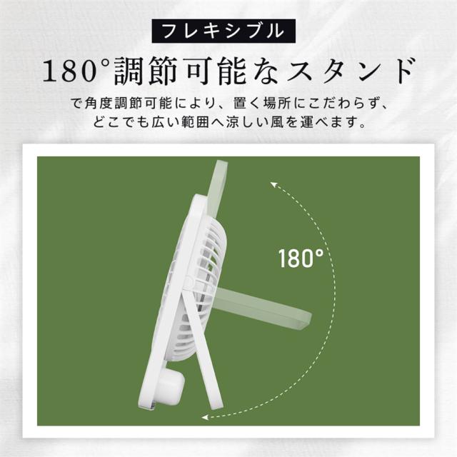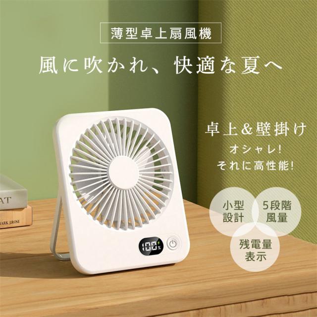 卓上扇風機 充電式 小型扇風機 ハンディファン 壁掛け 薄型 静音 コンパクト 省スペース 簡単操作 風量5段階 残電量表示 ポー