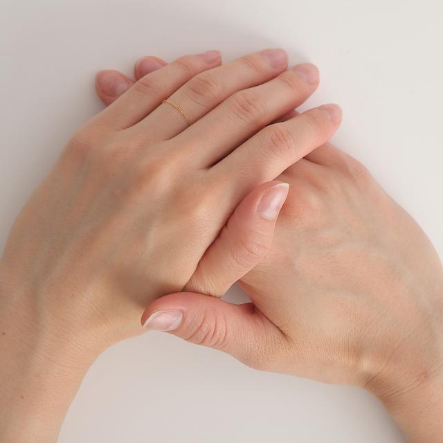 華奢で繊細チェーンだから、ピンキーリングでも重ね付けでも大活躍。