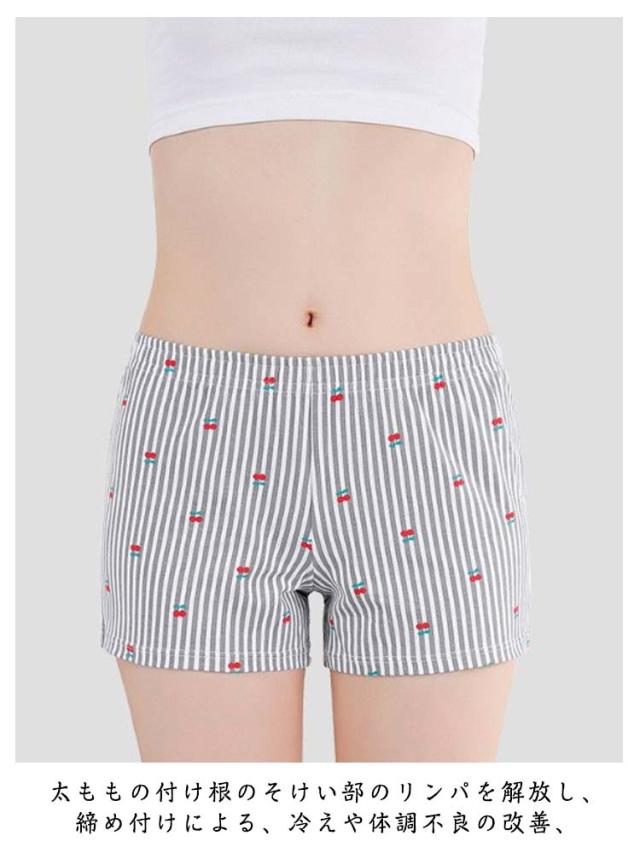 | 太もも周りを締め付けない、女性用トランクスショーツです。 ウエストはゴムでお腹を締めつけにくく、裾広がりで履きやすく、脱ぎやすいパンツです。 太ももの付け根のそけい部のリンパを解放し、締め付けによる、冷えや体調不良の改善、 太もも周りの黒ずみ防止に役立つレディーストランクスです。 | |
