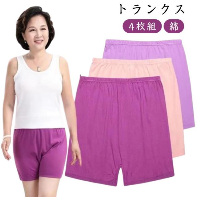 ボックスショーツ 4枚セット!トランクス コットン レディース ショーツ ギフト 深ばき トランクスショーツ 婦人 下着 綿 可愛い 女性用 ハイウエスト おやすみパンツ ボクサーパンツ ゆったり らくちん アンダーウェア 4枚セット!トランクス ママ 母の日 パンツ