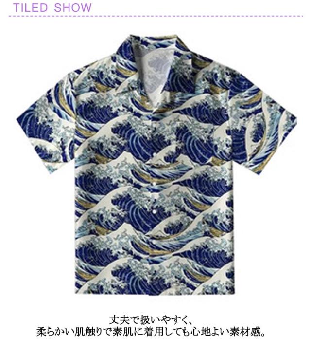 カジュアル 半袖 男性 波柄 大人 レトロ カジュアルシャツ 夏 海柄 リゾート 和柄 大きいサイズ 開襟シャツ 和風 半袖 開襟シャツ アロハシャツ ストリート 総柄シャツ 柄シャツ 薄手 海波柄 夏服 シャツ 半袖シャツ 総柄 メンズ ビーチ 川 海辺 旅行 お祭り 花火大会