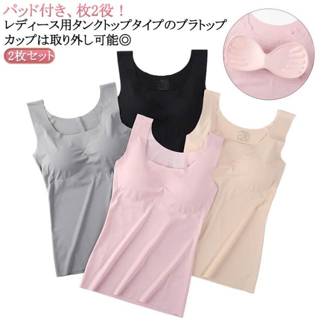 2枚セット カップ取り外し可能 冷感 タンクトップ ブラトップ ブラトップ ノンワイヤー シームレス アンダーゴムなし 肌着 ひんやり 胸パッド付 リラックス 大きいサイズ ストレッチ ブラキャミ レディース インナー ギフト プレゼント