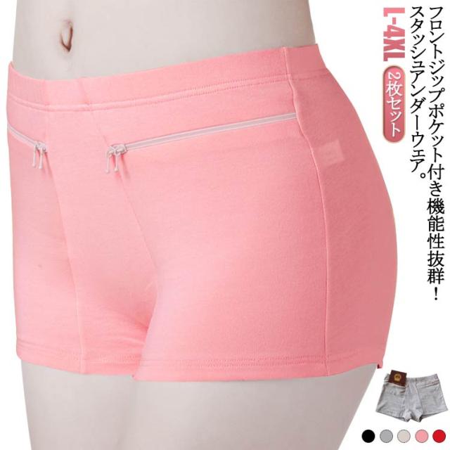 盗難対策 防犯 送料無料 レディース ジップポケット インナーパンツ 2枚セット ボクサーパンツ 隠しポケット付 アンダーウェア ボクサーパンツ ボクサーパンツ ジップポケット付き 無地 女性用 ボクサーパンツ 海外旅行 パスポート お金