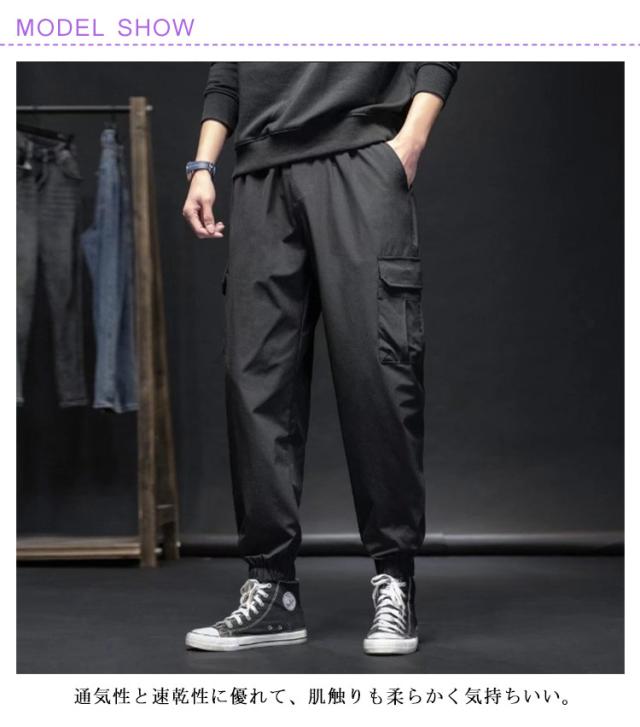 | M-3XL!夏の蒸れに対応する男性用カーゴパンツ。 通気性と速乾性に優れて、肌触りも柔らかく気持ちいい。 ウエストにはゴムバンドに加えて調整紐が付いており、腰回りや好みに合わせて自由に調整可能 機能性のあるポケット仕様の作業ズボンです。 カジュアルな普段着としてのお出かけ服、デート服、私服などにはもちろん、通勤通学のパンツとしても行ける一着です。 | |