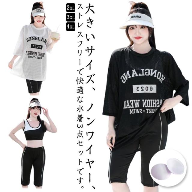 | 大きいサイズ、ノンワイヤー、ストレスフリーで快適な水着3点セットです。 ハーフパンツとロングシャツで露出は抑えます。 水陸両用なので、ジムやヨガでも着用できる、便利なアイテムです。 | |