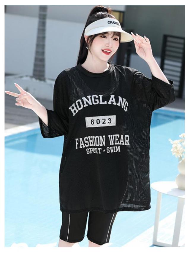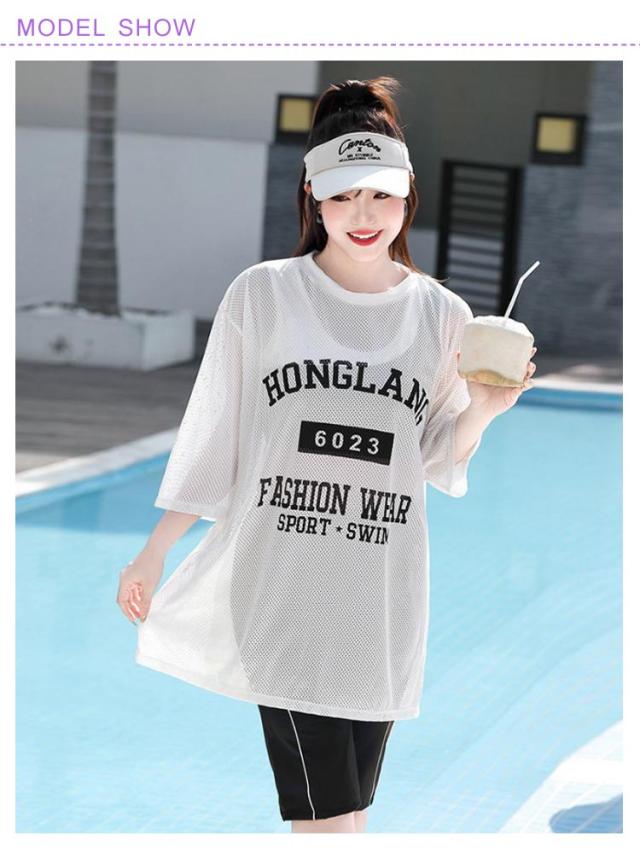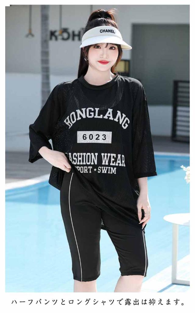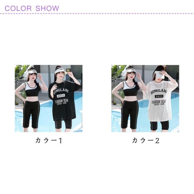 かわいい 3点セット レディース ショートパンツ 体型カバー 大きいサイズ 水着 セパレート 大きいサイズ ノンワイヤー メッシュトップス 露出控えめ 五分袖 タンキニ ショートパンツ 五分パンツ スポーティー 海 ビーチ 2XL 3XL