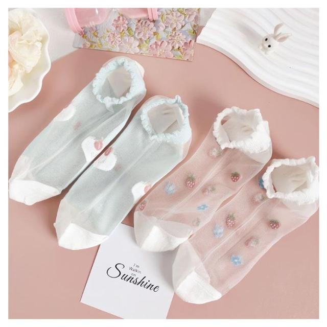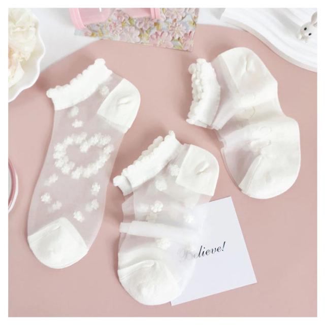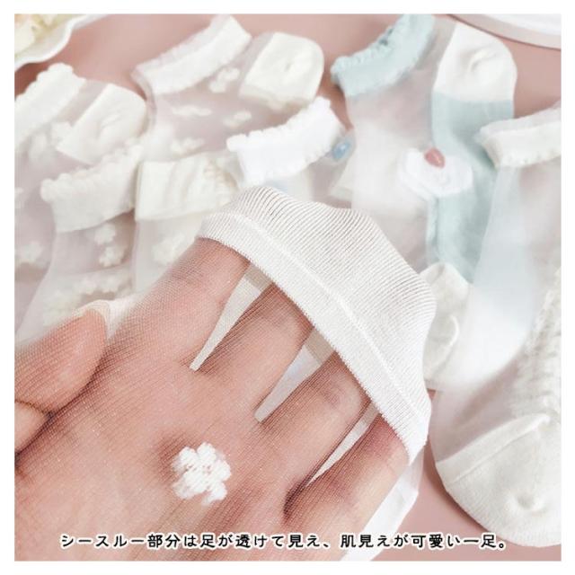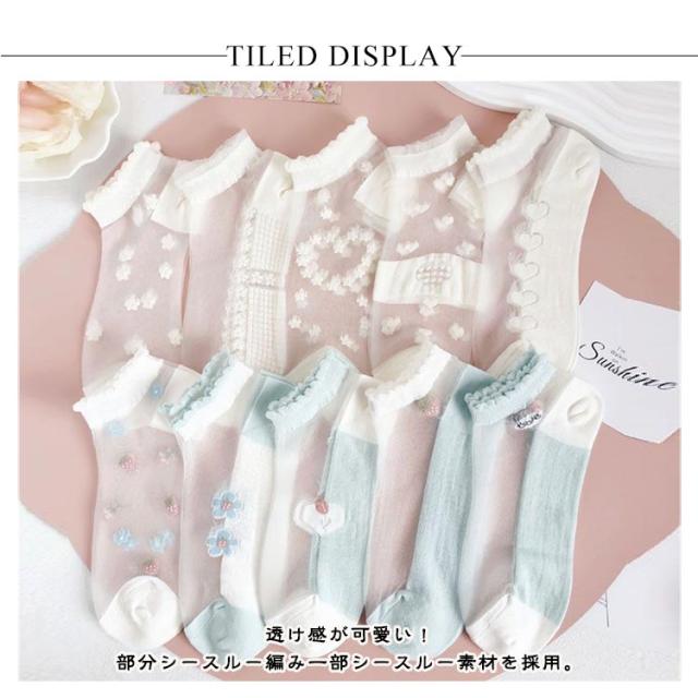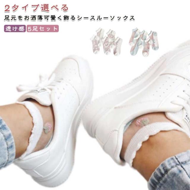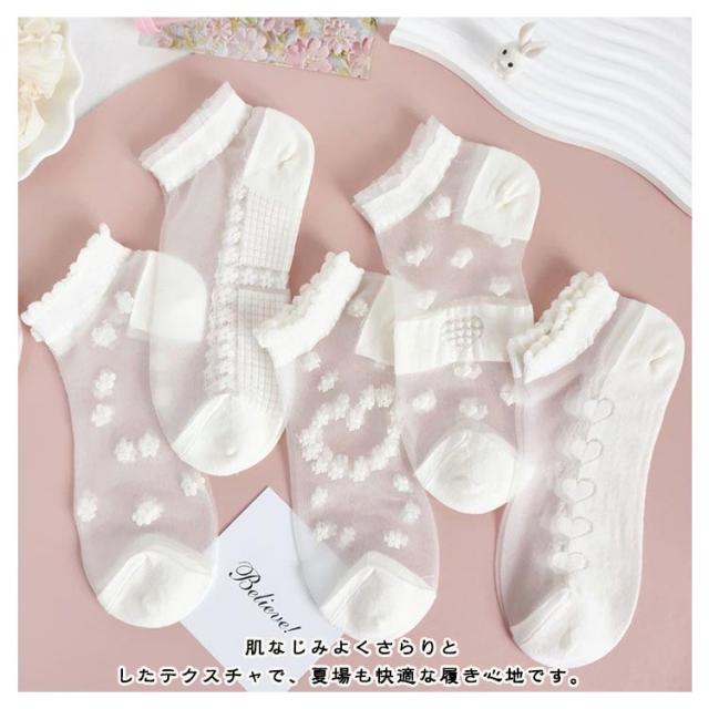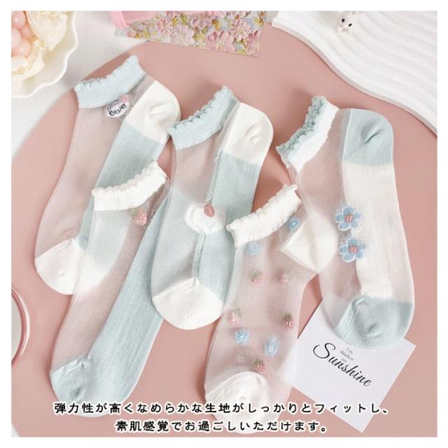 シースルー 5足セット 5足セット レディース 靴下 チュール ソックス 花柄レースソックス くつ下 ショートソックス シースルー靴下 総柄 チュールフラワーソックス 透け感 伸縮性 可愛い