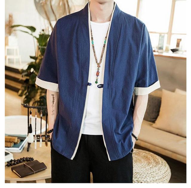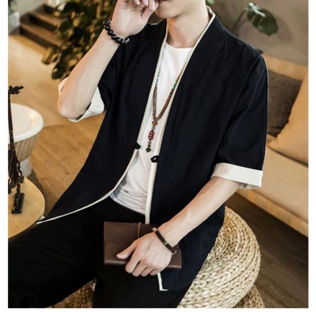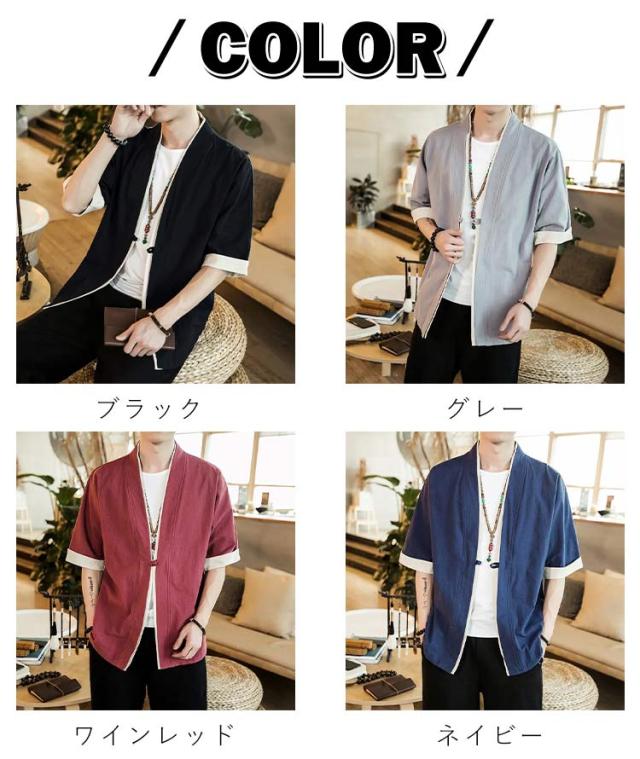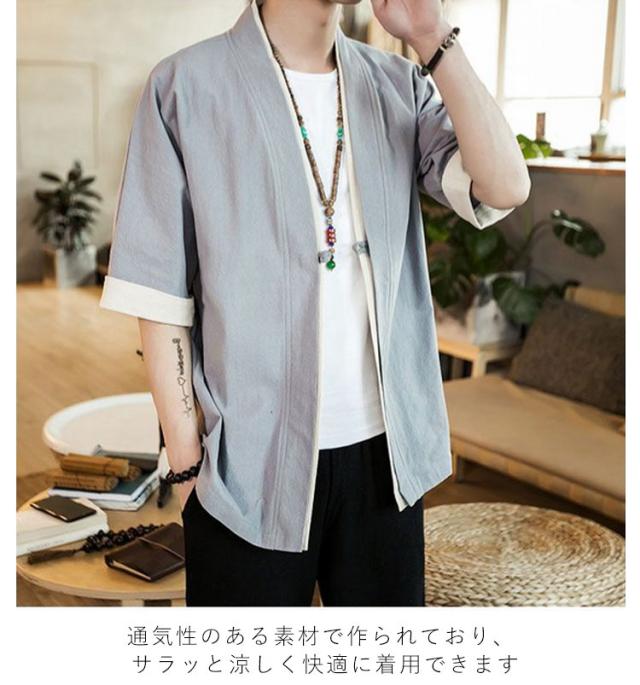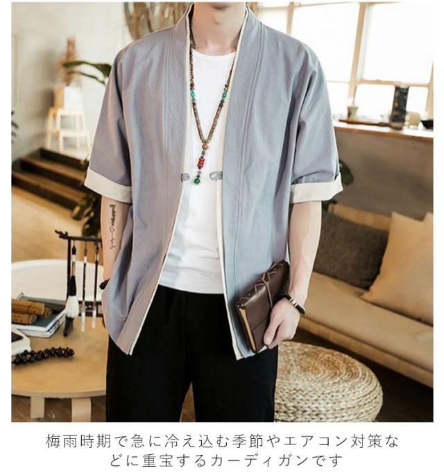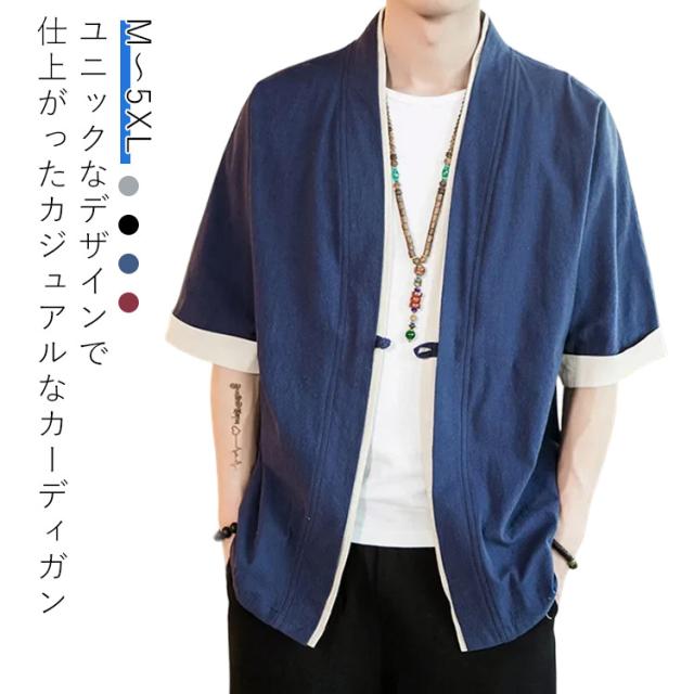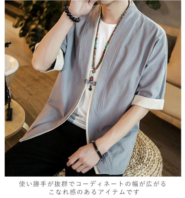 夏服 カーディガン シンプル 薄手 甚平風 和式パーカー 無地 無地 ゆったり 羽織 開襟シャツ 春夏 トップス 和風 体型カバー カジュアル カーディガン 大きいサイズ おしゃれ 大人 男性 花火大会 お出かけ
