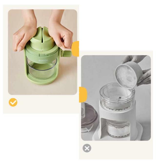 | 操作簡単な手動氷削り器。【サイドハンドルタイプ】 素材、厚み、角度にこだわったステンレスカッター お子様でもラクに回せる回転ねじ式構造 スパイクが氷をしっかり固定。冷蔵庫の角氷も使えます。 氷ケースを取り外しても使えます! フルーツやお料理を盛ったお皿にかき氷を直接トッピングすることもできます。 | |