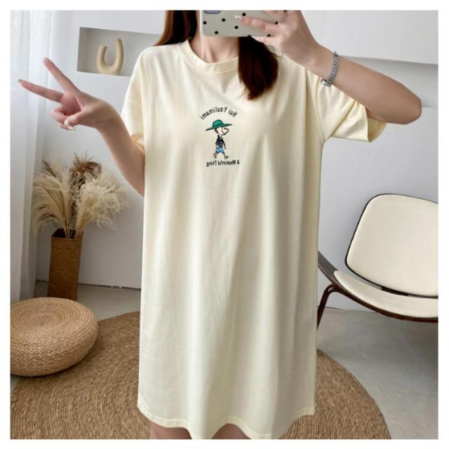 | 授乳口付き!産前産後兼用ロングTシャツワンピース 裾広がりが大きめで少しルーズな シルエットなので、 妊娠中はもちろん、体型カバーにもぴったりです! お手持ちのボトムスにあわせてもいいですし、 これからの季節、1枚でざっくり着てもかわいいカジュアルスタイルを楽しめます。 柔らかい生地なので着心地も抜群ですよ! | |