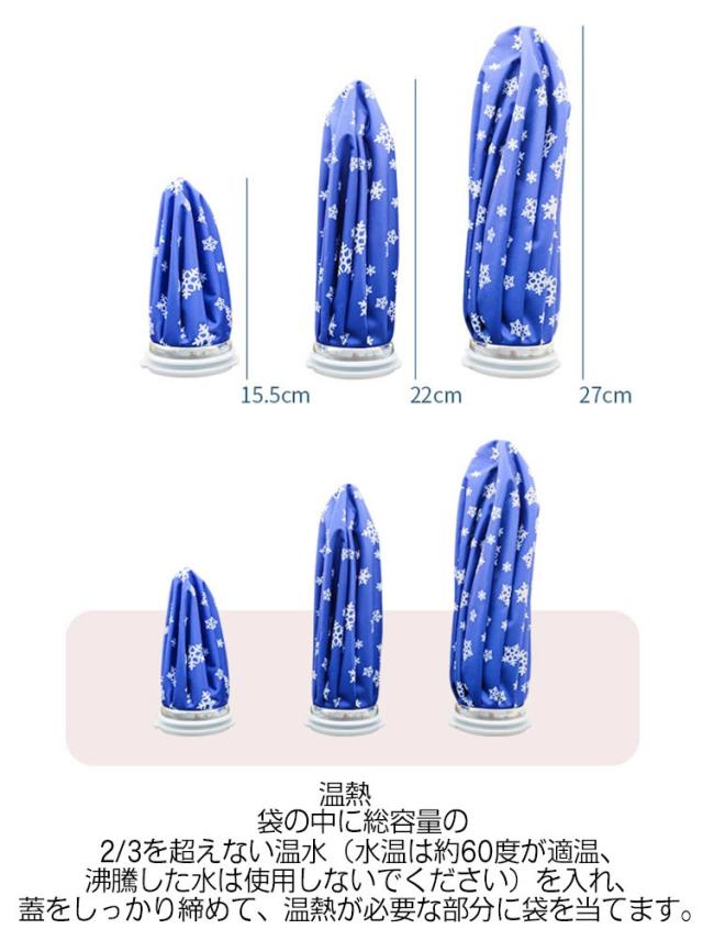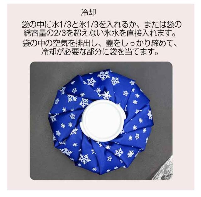 | 多目的アイスバッグ「ひんやり瞬間クール」【2個セット】 氷と水を注ぐだけで、熱中症対策や捻挫・打撲の応急処置に即冷却効果を発揮。 柔らかい生地が体の凹凸に沿ってしっかり密着。関節・筋肉の冷却にも最適! 小型&軽量設計でバッグにポンと入るから、アウトドアやスポーツシーン、通勤・通学にも大活躍! ケガの応急冷却はもちろん、食品・飲料の保冷、薬品輸送時の温度管理など多彩に活躍。 冷却 袋の中に水1/3と氷1/3を入れるか、または袋の総容量の2/3を超えない氷水を直接入れます。袋の中の空気を排出し、蓋をしっかり締めて、冷却が必要な部分に袋を当てます。 温熱 袋の中に総容量の2/3を超えない温水(水温は約60度が適温、沸騰した水は使用しないでください)を入れ、蓋をしっかり締めて、温熱が必要な部分に袋を当てます。 | |