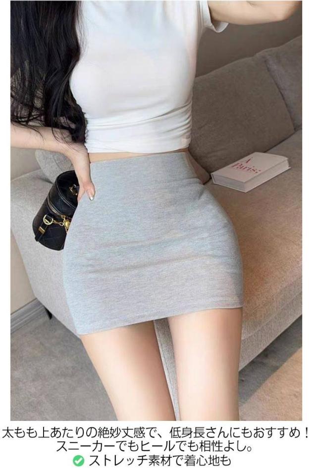 ストレッチ タイトスカート ハイウエスト ミニスカート ミニスカート スカート グレー 無地 夏用スカート 美脚