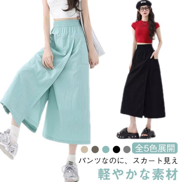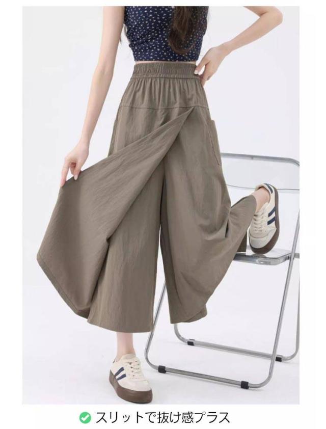 ハイウエスト スカートパンツ スカートパンツ ガウチョパンツ ワイドパンツ カーゴスカート キュロットスカート ガウチョ スカパン 袴パンツ スリット入り スカート風パンツ パンツスカート ゆったり ナチュラル