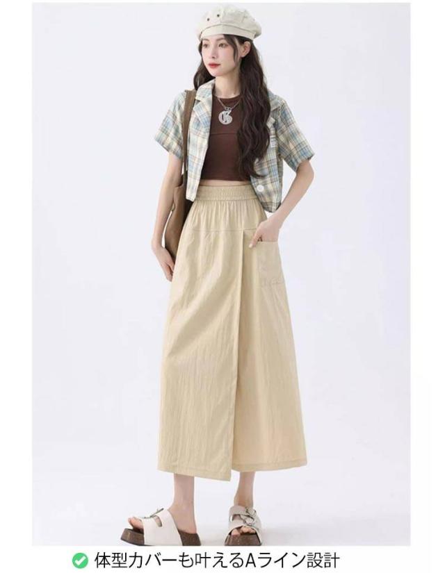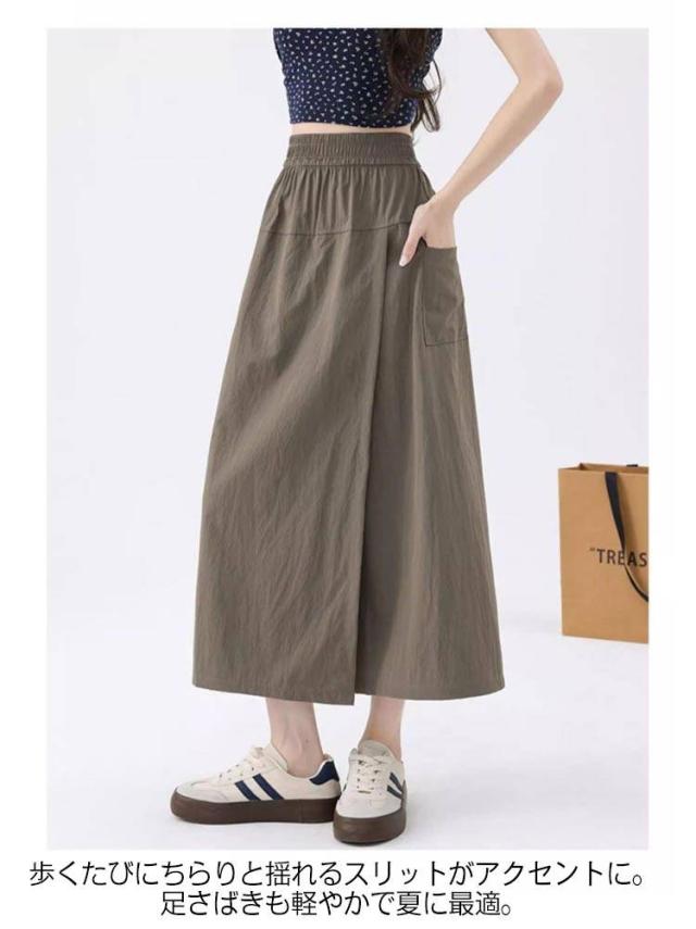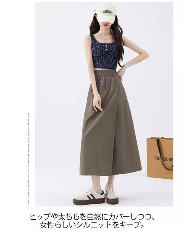 | 「動きやすいのに、ちゃんとおしゃれ。」 スカートの可愛さと、パンツの機能性を兼ね備えた、スリット入りカーゴ風スカパンが登場。 さりげないAラインシルエットと大胆すぎないスリットデザインで、体型をさりげなくカバー。 小柄さんにもバランスがとりやすい設計です。 ? ハイウエスト設計で脚長見せ◎ ウエストラインを高めに設定し、トップスINするだけでスタイルアップ。小柄さんにもぴったりの設計。 ? スカート見えのワイドパンツ構造 スカートのように見える前裾デザインの中は、しっかりパンツ構造で動きやすさ&安心感も◎ ? スリットで抜け感プラス 歩くたびにちらりと揺れるスリットがアクセントに。足さばきも軽やかで夏に最適。 ? 体型カバーも叶えるAライン設計 ヒップや太ももを自然にカバーしつつ、女性らしいシルエットをキープ。 ? ×ナチュラル系カラー展開(5色) ブラック、ベージュ、カーキ、ブルー、グレーなど、着まわしやすい全5色。 | |