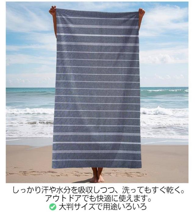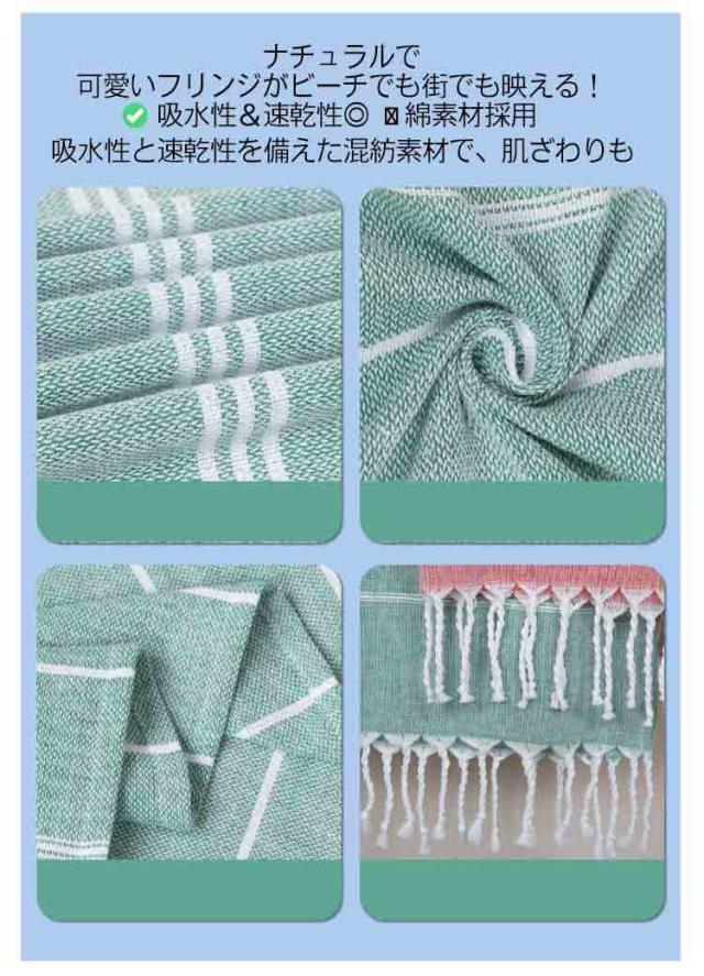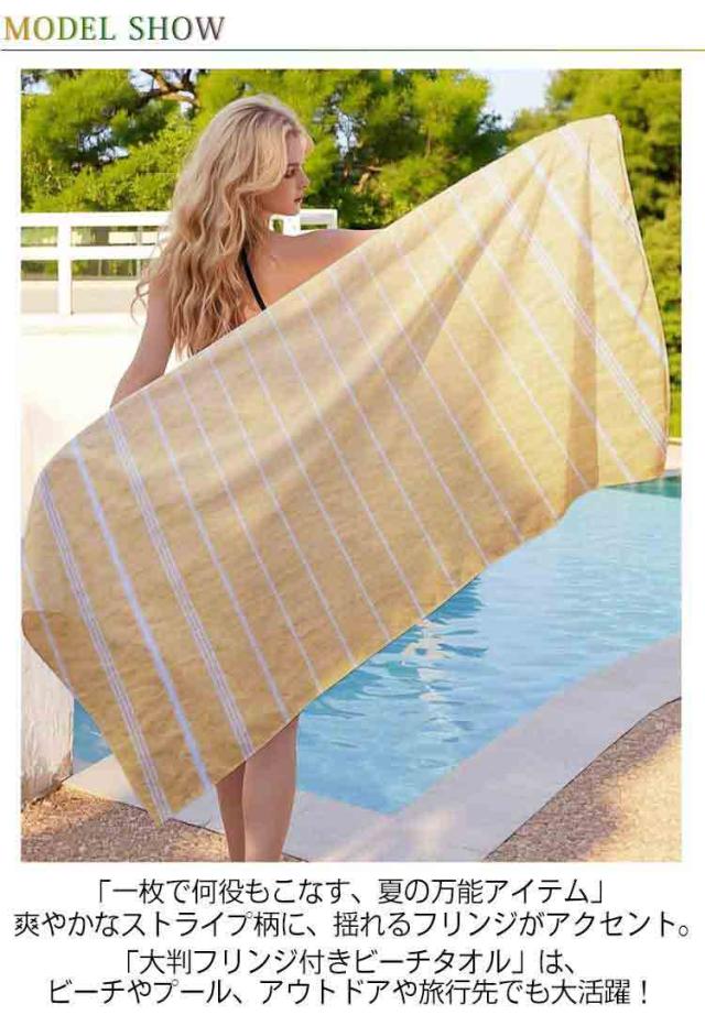 ストライプ柄 吸水タオル フリンジ付き 速乾タオル ビーチタオル 大判サイズ ピクニックマット タオルケット 海辺 アウトドア プール 旅行 9色