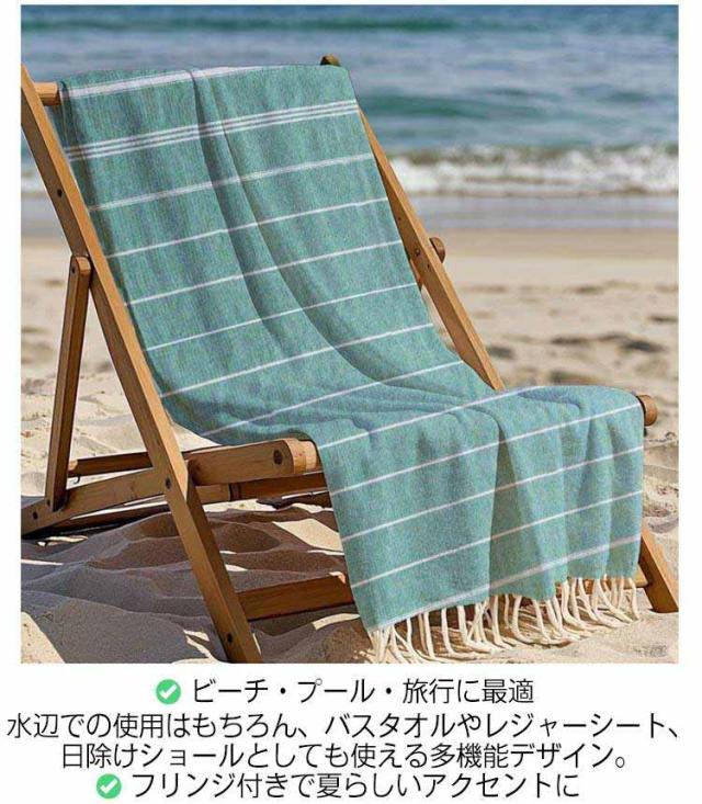 | 「一枚で何役もこなす、夏の万能アイテム」 爽やかなストライプ柄に、揺れるフリンジがアクセント。 「大判フリンジ付きビーチタオル」は、ビーチやプール、アウトドアや旅行先でも大活躍! 吸水性と速乾性を備えた混紡素材で、肌ざわりも◎。 ? ビーチ・プール・旅行に最適 水辺での使用はもちろん、バスタオルやレジャーシート、日除けショールとしても使える多機能デザイン。 ? 吸水性&速乾性◎ ?綿素材採用 しっかり汗や水分を吸収しつつ、洗ってもすぐ乾く。アウトドアでも快適に使えます。 ? 大判サイズで用途いろいろ 羽織る、巻く、敷く、包む…どんなシーンにも対応するゆったりサイズ(約180×100cm)。 ? フリンジ付きで夏らしいアクセントに ナチュラルで可愛いフリンジがビーチでも街でも映える! ? 9色展開でお気に入りがきっと見つかる ライトブルー、グリーン、ピンク、ネイビー、オレンジなど豊富なカラーバリエーション。 | |