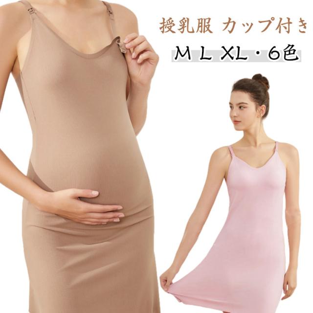 カップ付き マタニティ タンクトップ キャミソールワンピース 万能キャミワンピ 授乳服 インナー マタニティ マタニティ キャミソール ワンピース ロング 無地 大きいサイズ ママ 出産準備 産前 産後