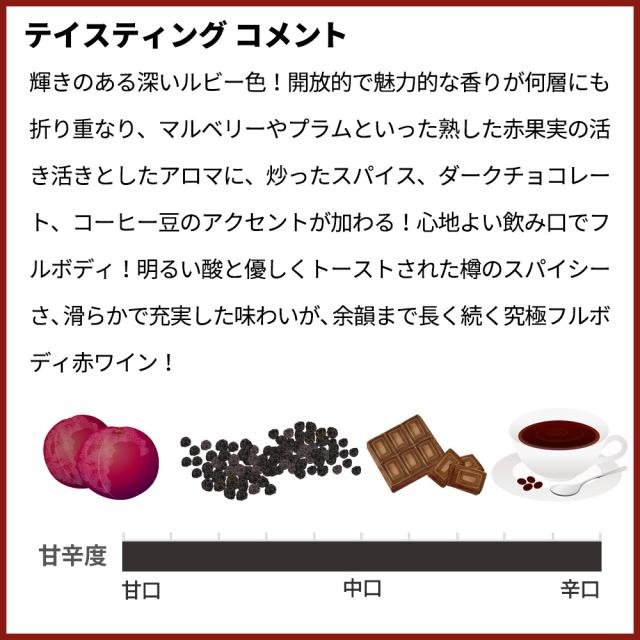 ![]() ■ぶどう品種:シラー49%、カベルネ・ソーヴィニヨン35%、プティ・ヴェルド10%、マルベック6% ■発酵・熟成:フレンチオーク樽225L、400Lで18ヶ月熟成 ■収量:25hl/ha コス・デストゥルネルをメドックのスーパー・セカンドと呼ばれるまでに育て上げたブルーノ・プラッツ氏。サン・テミリオンでアンジェリュスの第一特別級昇格を果たしたユベール・ド・ブアール氏。南アフリカ最高の名声と歴史を誇るクレイン・コンスタンシアのロウウェル・ユースト氏。三氏のコラボレーションで誕生したワイナリーがアンウィルカ・ヴィンヤード! 南アフリカのテロワールが生み出す果実のリッチさ、しなやかさとボルドーのワイン醸造哲学が生み出す繊細さとバランスの良さを持つワインがコンセプト! ボルドーの名門をも魅了する地「南アフリカ」で生み出されたシラー+カベルネブレンド!柔らかくもボリューム感があり旨味たっぷりの果実!ボルドーの銘醸、シャトー・コス・デストゥルネルの元オーナーと、サンテミリオン第一級格付けシャトー・アンジェリュスのオーナーとクレイン・コンスタンシア・エステイトのジョイントワインで有名な“Anwilka (アンウィルカ) ”のセカンドワイン! 最新ヴィンテージで素晴らしい出来となった[2022]年で少量入荷! |