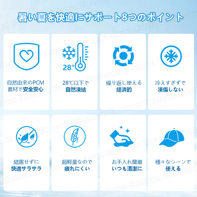 【最新素材PCMとTPUを使用し、安全で環境に優しく無臭です】PCMとTPUは両方とも、冷却グッズに使用できる最新の環境に優しい素材です。大人も子供も体に害を与えることなく使用でき、非常に実用的で安全です。冷感マッドは凍ると真っ白になります。視覚的にも人々に清涼感を与えます。