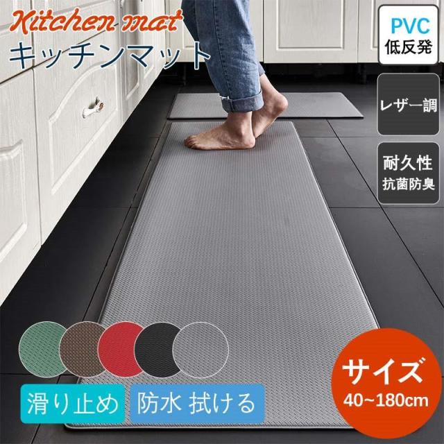2点購入で500円オフ! キッチンマット 拭ける PVC 台所 マット レザー調 低反発 ロング 滑り止め 洗面台用 エンボス 加工 幅広 オールシーズン 北欧風