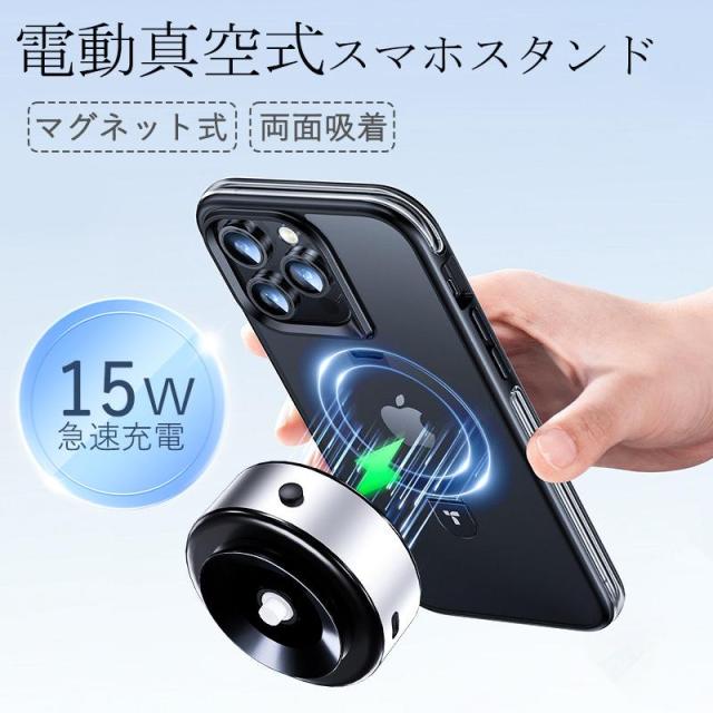 スマホホルダー 車 ワイヤレス充電 スマホホルダー 車載ホルダー マグネット magsafe 吸盤 電動真空吸着機能 スマホスタンド 携帯ホルダー 全機種対応