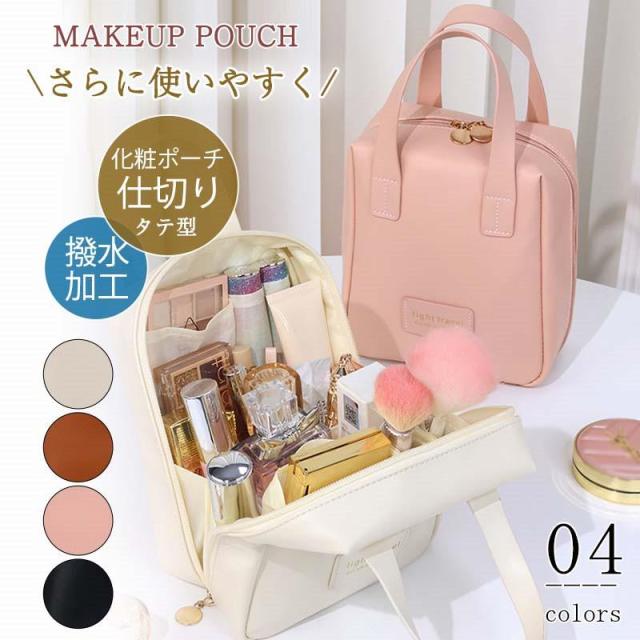 化粧ポーチ メイクポーチ コスメポーチ トラベルポーチ ポーチ 縦長 かわいい 自立 縦型 タテ型 大容量 整理 ポケット シンプル 仕切り 撥水加工