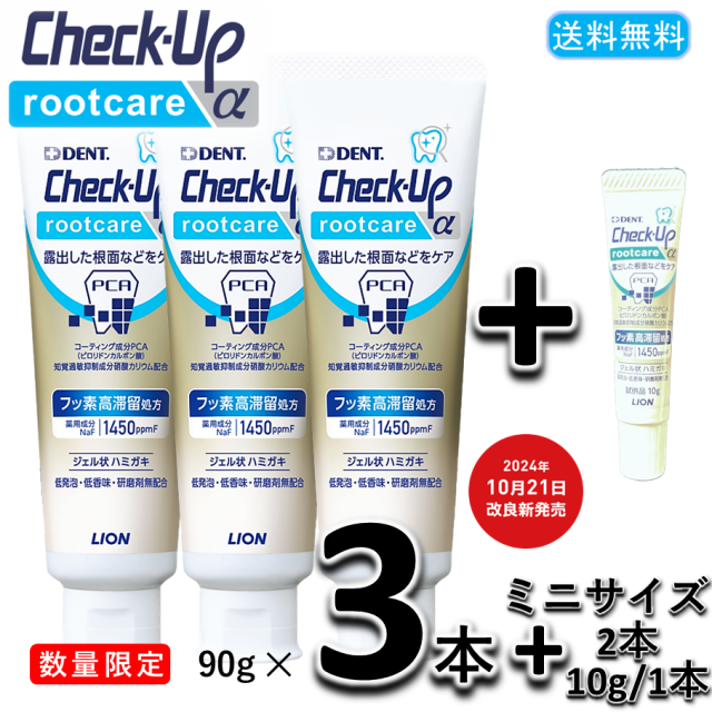ライオン デント チェックアップ ルートケアα アルファ 90g 3本セット+ミニサイズ1本 LION DENT 高濃度フッ素配合 1450ppm F 歯磨き粉