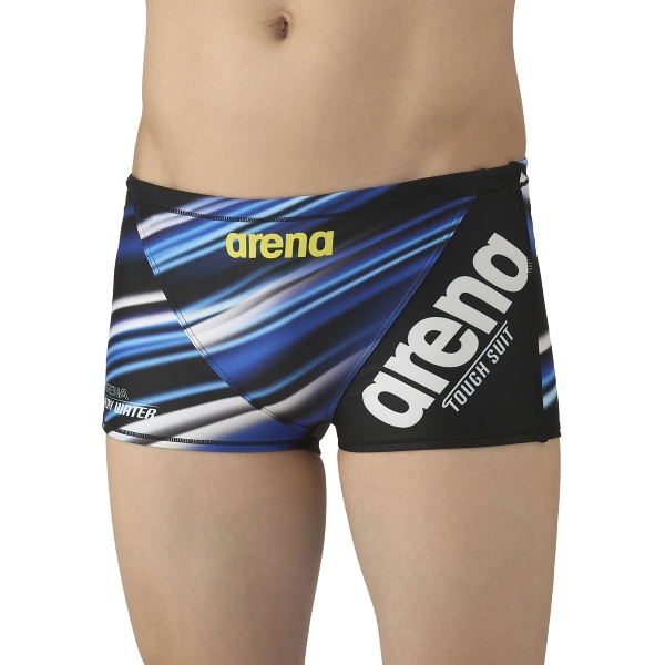 トレーニングカテゴリー「TOUGHSUITシリーズ」。大会に向けて練習を重ねる頻度が高いスイマーにオススメの練習用水着。環境に配慮したリサイクルポリエステル素材「タフスキンT2E」を使用し塩素に強く長持ち。アリーナロゴが左腿に配置されたデザインの練習水着。スタイリッシュでカッコいいデザインから可愛くトレンド感があるデザインまで、幅広くバリエーションに富んだスタイルを一つの品番で表現。BKBL:地球や宇宙の光と自然の色彩の美しさから着想を得たデザイン。NVWH:パイナップルのモチーフを大胆に使用したカジュアルでトレンド感のあるデザイン。BKPP:アリーナロゴの中にきらめく光の柄を入れたシンプルながらもスタイリッシュな印象を与えるデザイン。PPBK:地球や水の色彩の美しさから着想を得たクールなデザイン。前身頃、後身頃に黒の裏地付き。ショートレッグタイプ。