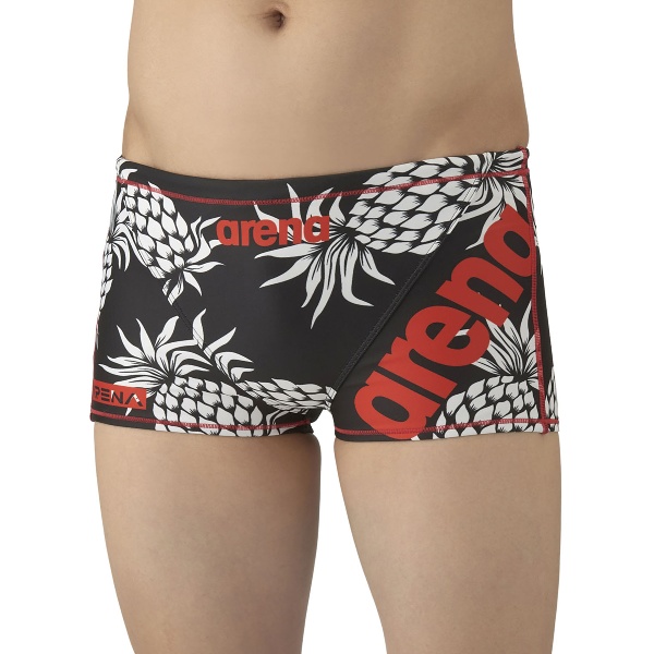 トレーニングカテゴリー「TOUGHSUITシリーズ」。大会に向けて練習を重ねる頻度が高いスイマーにオススメの練習用水着。環境に配慮したリサイクルポリエステル素材「タフスキンT2E」を使用し塩素に強く長持ち。アリーナロゴが左腿に配置されたデザインの練習水着。スタイリッシュでカッコいいデザインから可愛くトレンド感があるデザインまで、幅広くバリエーションに富んだスタイルを一つの品番で表現。BKBL:地球や宇宙の光と自然の色彩の美しさから着想を得たデザイン。NVWH:パイナップルのモチーフを大胆に使用したカジュアルでトレンド感のあるデザイン。BKPP:アリーナロゴの中にきらめく光の柄を入れたシンプルながらもスタイリッシュな印象を与えるデザイン。PPBK:地球や水の色彩の美しさから着想を得たクールなデザイン。前身頃、後身頃に黒の裏地付き。ショートレッグタイプ。