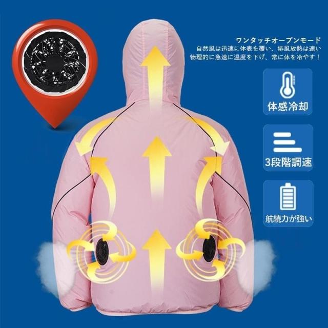 特徴:空調ウェア 涼しい 長袖 軽量 大容量バッテリー 作業服 ファン付き 強風 大風量 節電 扇風機付き 速乾 薄手
