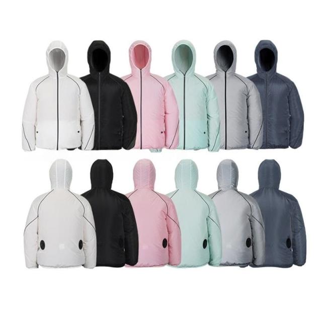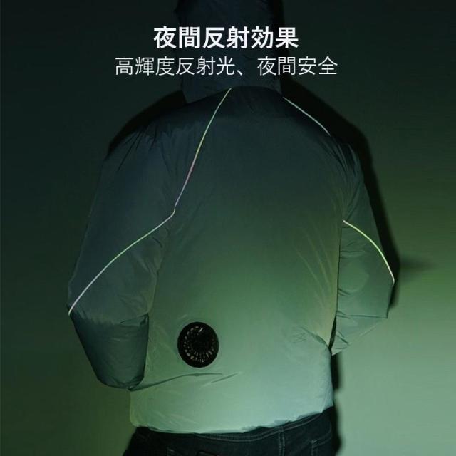 ■電気部品は簡単に取り外し可能です。服は洗濯機でお洗濯が可能です。 洗濯前に、電池、扇風機、電源ケーブルを取り外してください。水においてないようにしてください。