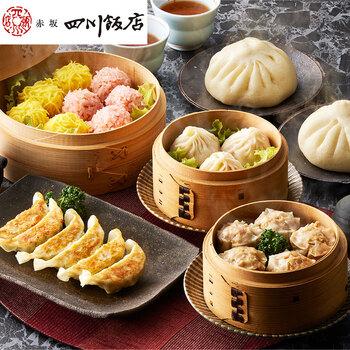 中華料理の名店「赤坂四川飯店」監修の、餃子、肉まん、小籠包、焼売などの点心を詰め合わせたセットです。