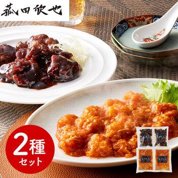 ■:ずわい蟹入りエビチリソース130g×2、黒醋酢豚150g×2