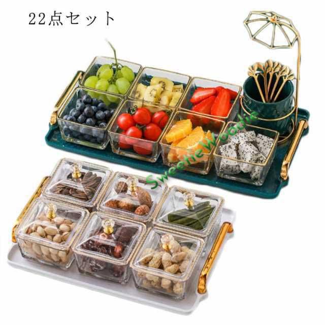 | サイズについての説明 | 22点(小鉢*7+蓋*7+トレー*1+ピック*5+ピックケース*1+鉢*1) 小鉢材質:ガラス サイズ:9*5.3cm 蓋材質:アクリル ピック材質:合金 サイズ:長12cm 鉢材質:陶器 サイズ:直径8.5*高9cm ピックケース材質:合金 サイズ:直径9*高24cm トレー材質:陶器+合金 サイズ:長30.7*幅22*高4cm |