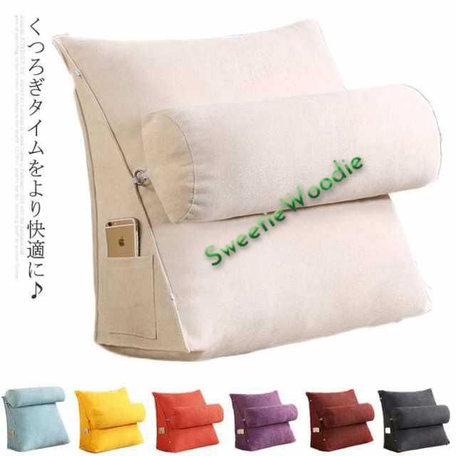 三角クッション 背もたれ クッション ベッドクッション ソファークッション 三角 枕 座布団 足枕 座椅子 腰枕 腰クッション ポケット付き 北欧 洗える 洗濯可