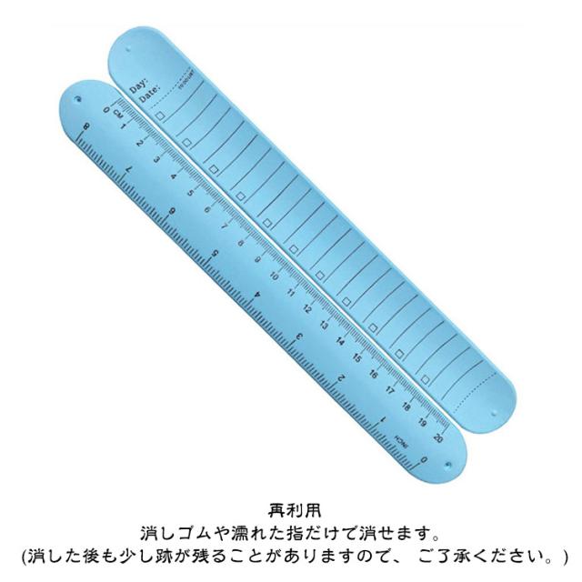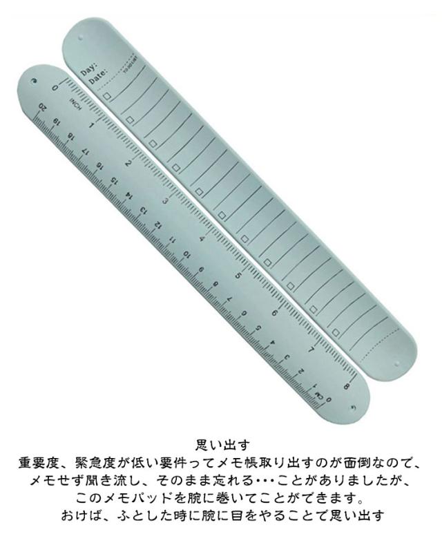 | 何度でも書いて消せる! メモバンド 【3枚セット】 選べる3サイズ 子供用/大人用/ワイドサイズ 「いつでもどこでも、書ける/思い出せる」 をコンセプトにした、腕に巻いて使用できるメモ帳です <お勧めポイント> ●書きやすい 上質なシリコーン素材で、とても書きやすい ●再利用 消しゴムや濡れた指だけで消せます。 (消した後も少し跡が残ることがありますので、 ご了承ください。) ●思い出す 重要度、緊急度が低い要件ってメモ帳取り出すのが面倒なので、メモせず聞き流し、そのまま忘れる・・・ことがありましたが、このメモパッドを腕に巻いてことができます。おけば、ふとした時に腕に目をやることで思い出す ●いつでもどこでも 時にはひらめきのようなアイデアは、クリエーターにとって非常に役に立ちますが、メモを探しているときにそれを忘れると、非常に大きな損失になります。 ●腕に巻き付けて使用する 日付と仕事の記入位置があります。各アイテムの前に小さなグリッドがあり、完了ステータスを並べ替えたりマークしたりするために使用できます。 腕に巻き付けて使用するバンドタイプのウェアラブルメモです! ●定規としても 後ろにはセンチメートルとインチの2つの単位があります、とても便利です! | |