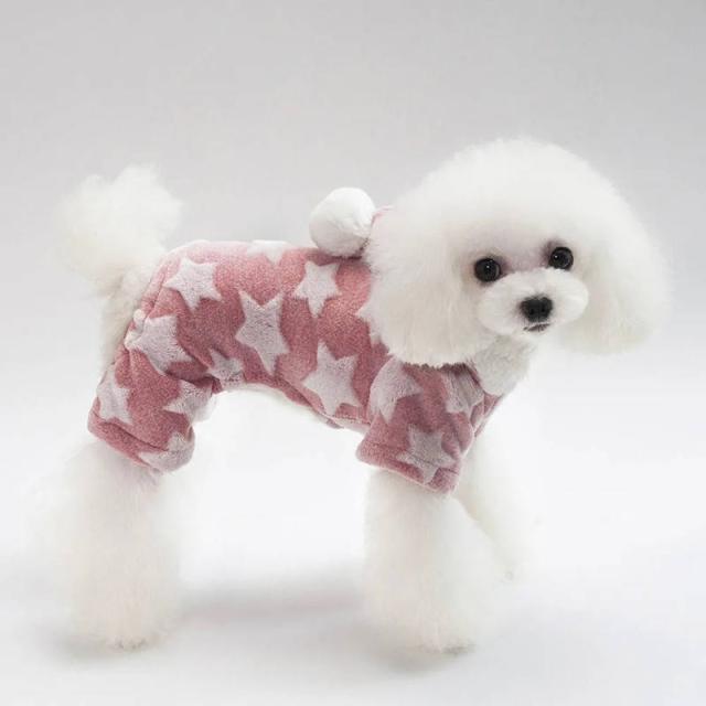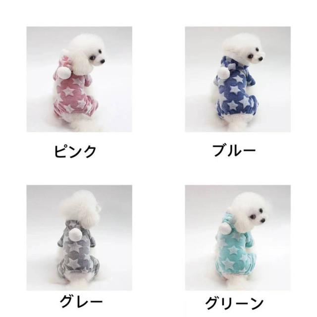 全4色 ドッグウェア つなぎ カバーオール 起毛 犬用 冬服 スター 星 フード付き ボア あったか 保温 部屋着 犬服 パジャマ オールインワン ロンパース 抜け毛防止 大きいサイズ ペット服 かわいい おしゃれ