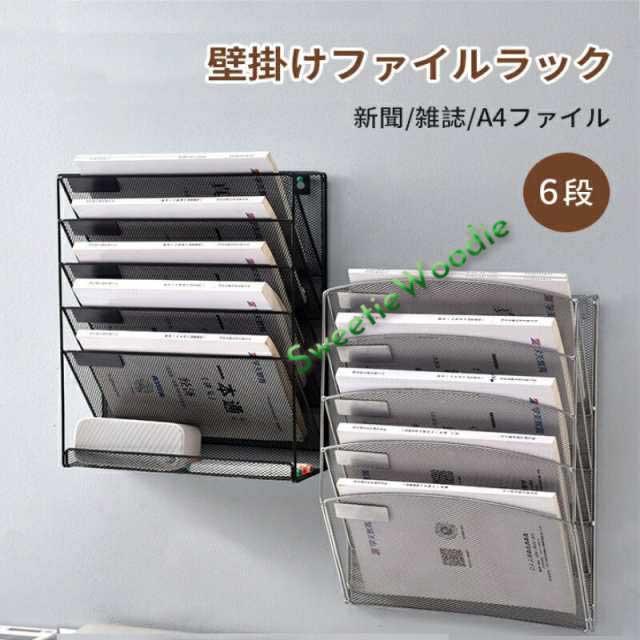 卓上収納ラック 壁掛け ファイルラック 6段 収納ラック 書類トレー 金属メッシュ 壁掛け書類ラック 多機能 新聞 雑誌 書類入れ 収納 ブラック 文房具 事務用品