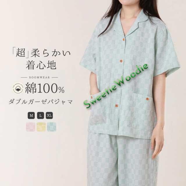 パジャマ レディース 綿100% 半袖 夏 ダブルガーゼ パジャマ 前開き チェック柄 寝巻き ルームウェア お揃い コットン 二重ガーゼ
