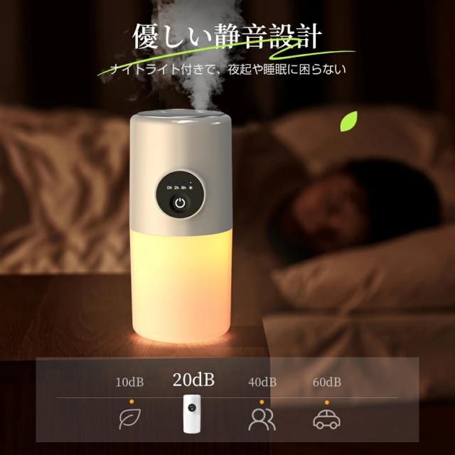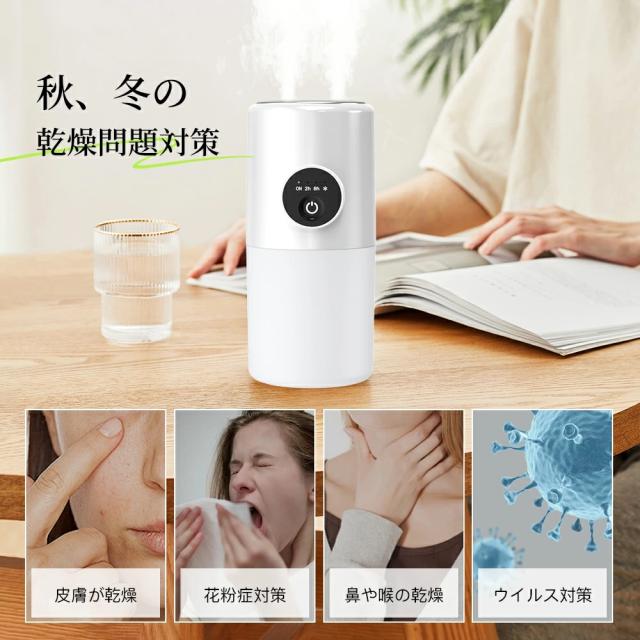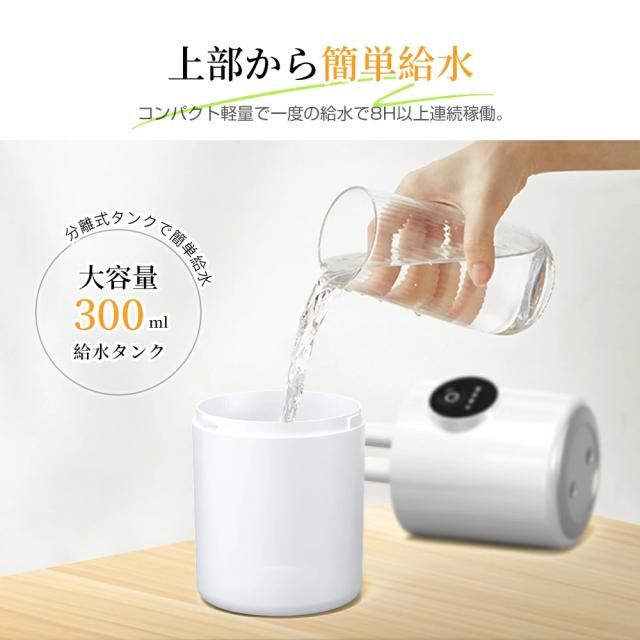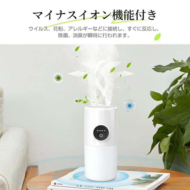 車用加湿器 卓上加湿器 ミニ加湿器 充電式 2/8h自動OFFタイマー 水溶性アロマ対応 ダブル噴霧 ミスト 超音波式 連続加湿 マイナスイオン 次亜塩素酸水対応 静音