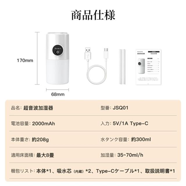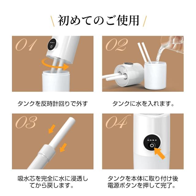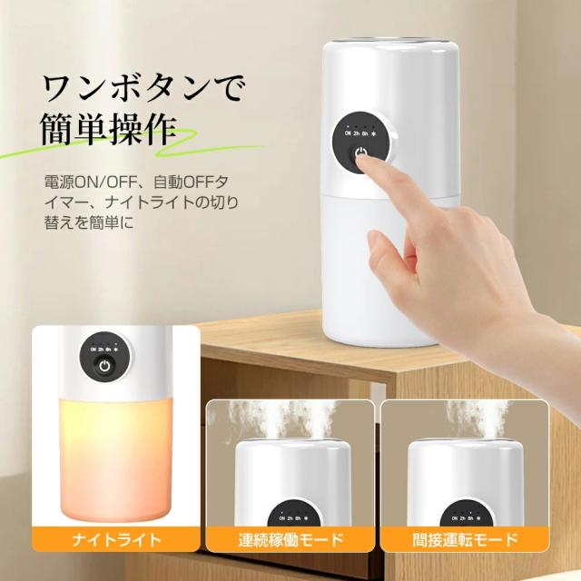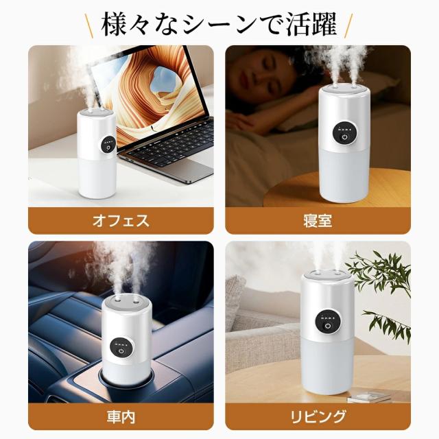 - 車内とオフィスの両方で使えるコンパクトサイズで、場所を選ばず加湿できます。