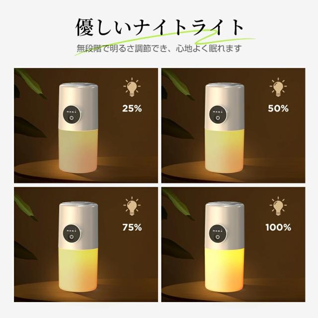 僅か20dBほぼ聞こえない動作音、ナイトライトは睡眠に支障のない明るさで、夜起きたときに困らない。夜中の授乳や赤ちゃんを寝かしつける時も利用可能です。