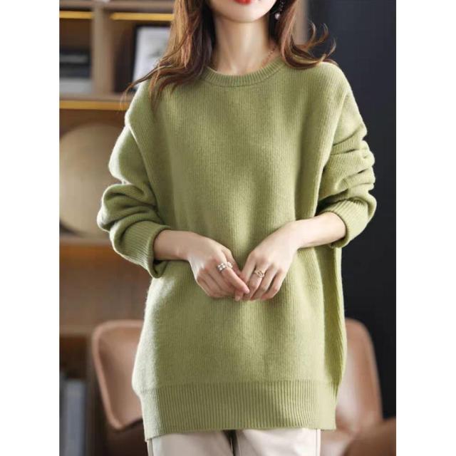 チュニック セーター レディース 長袖 秋服 秋冬 ニット 無地 丸首 プルオーバー 通学通勤 ゆったり ワイド 体型カバー イージートップス エレガント