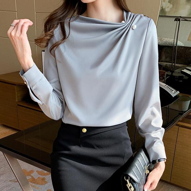 長袖ブラウス フォーマルブラウス ビジネス レディース トップス シャツブラウス シフォンブラウス 不規則 通学通勤 オフィス タック 仕事 エレガント