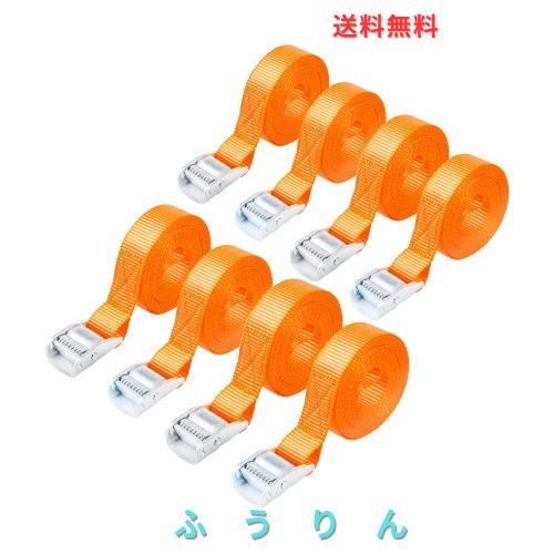 Runbod 荷締めベルト 荷物 固定 ベルト 2m 梱包/自転車/バイク 固定ベルト 幅25mm 8本セット オレンジ