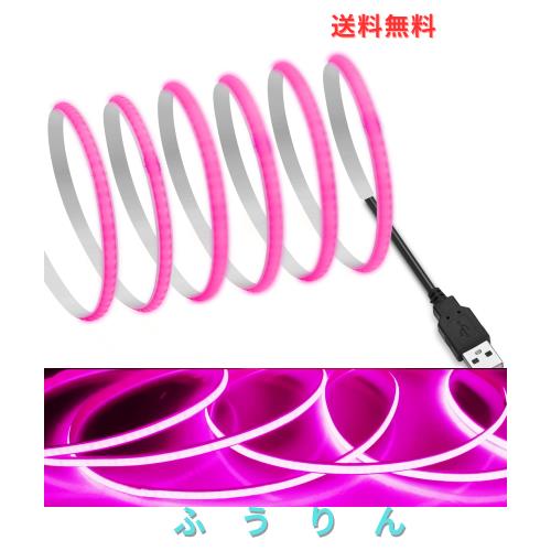 ◆商品名:【RYE】 COB テープライトLEDストリップライトフレキシブル 高密度 幅5mm 隠れたLEDテープライト2m 320LEDs/m ピンク DC5V 180°発光CRI>